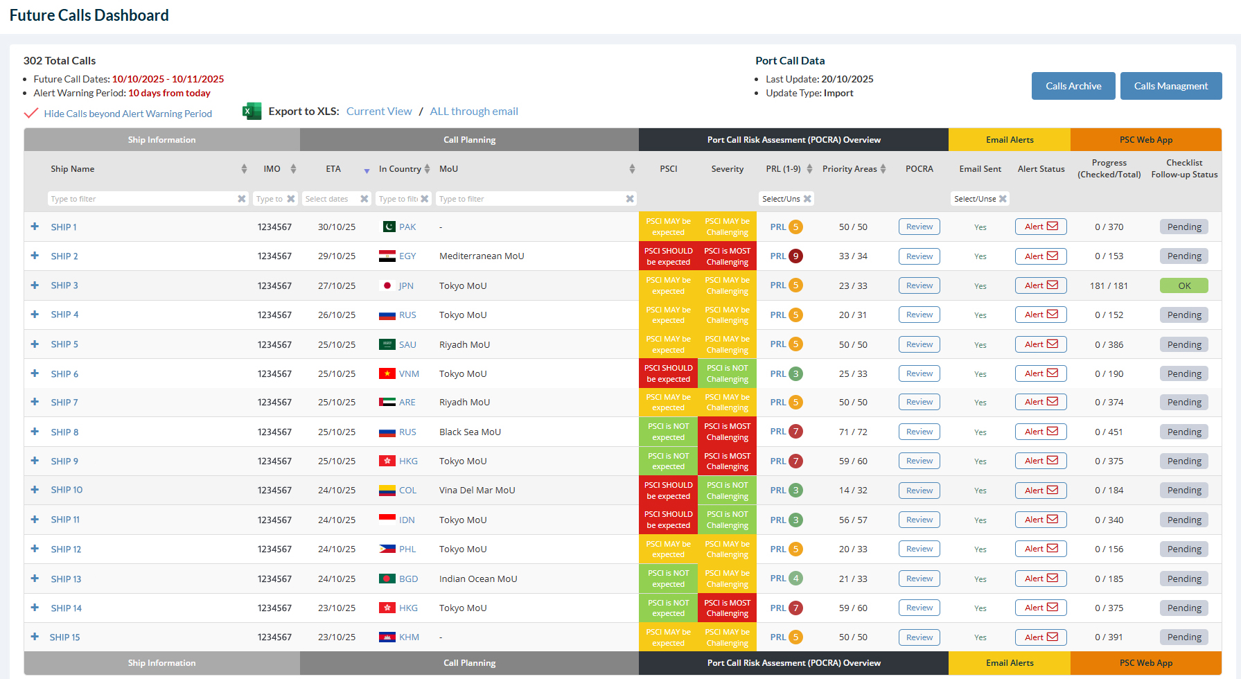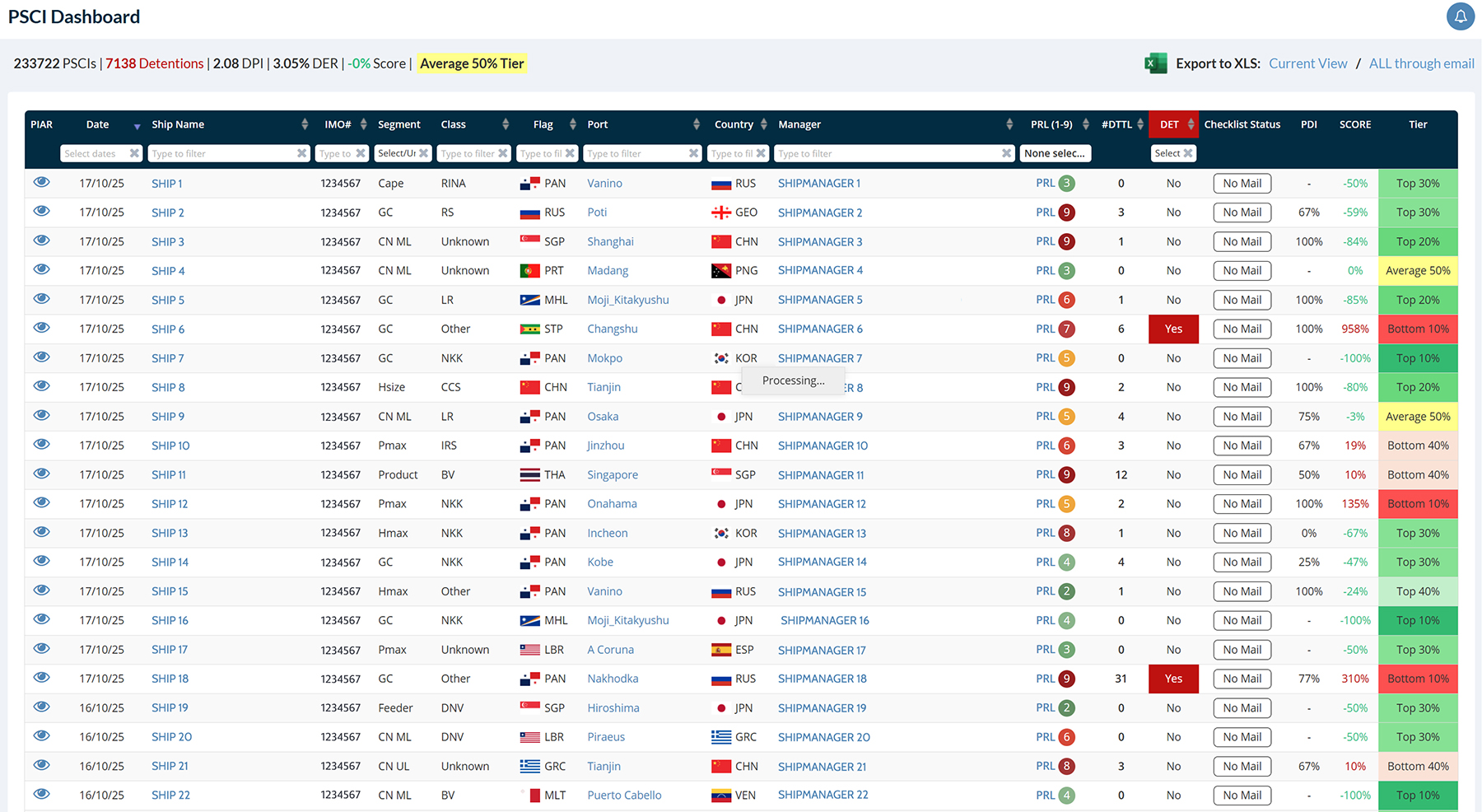 We host the largest and most comprehensive PSC intelligence database, going beyond just PSCIs and deficiencies. Our platform offers deep insights into actual inspections, from calculating PSCI windows for every port call to generating tailored checklists for specific ports, ships, and managers—ensuring everything is prepared efficiently and effectively.