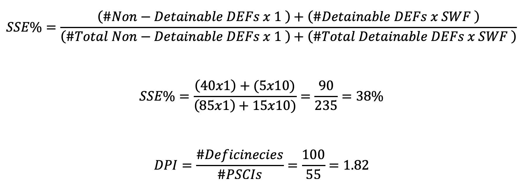 PDI Value: PDI = (# of Non Detainable Predictable Deficiencies x 1 + # of Detainable Predictable Deficiencies x SWF ) /  (# of Total Non Detainable Deficiencies x 1 + # of Total Detainable Deficiencies x SWF)